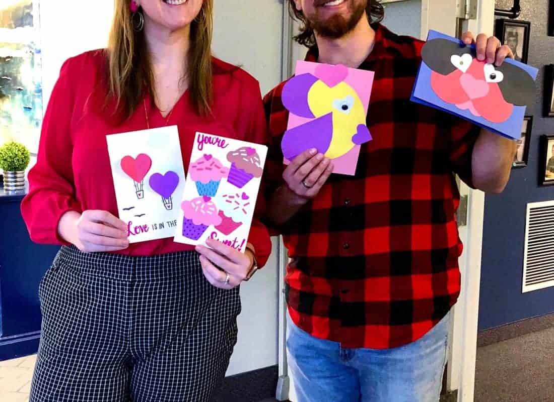Ten volunteers attended the Day of Service event, an additional three volunteers made cards at home, and 14 participants from Developing Potential, a local organization that provides quality day habilitation services to adults with developmental disabilities, made cards as part of their program activities for a total of 27 volunteers and 106 Valentines in all. Seven volunteers then worked with the Activity Director to surprise Victory Hills Senior Center residents and staff on Valentine’s Day with a handmade card that brought smiles to everyone’s faces.