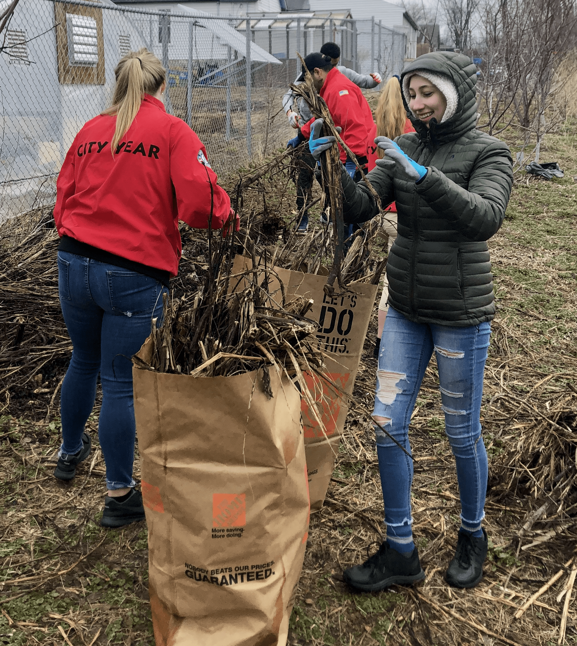 Work at the farm started early back in March. Volunteers from City Year flocked to Splitlog to help clean the sticks, leaves, and other debris that littered the ground. However, the wood they gathered would not leave the farm. Instead, it would eventually be used to implement “Hügelkultur” gardening techniques. Hügelkultur, which translates to “hill culture,” is a horticultural technique that traces its roots back to Germany. The practice involves using decaying sticks, leaves, and other compost materials to form mounds or raised beds. This enriches the soil and improves water retention so the farm can grow more produce to feed the community!April