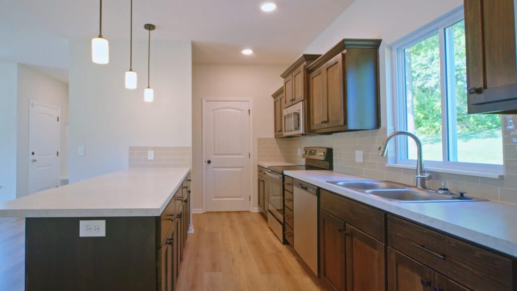This floor plan features a built-in storm shelter, a two-car garage, the possibility for a fourth bedroom in the basement, rough-in basement plumbing, all electric appliances, a 35-year roof, a stucco and front facade, a large front porch, a spacious floor plan, a master suite, and efficient HVAC. To view the full spec sheet, click here.