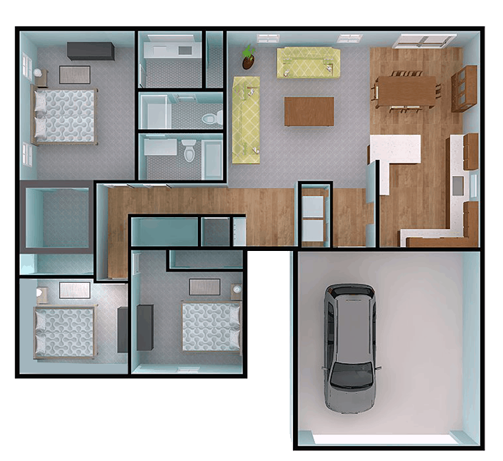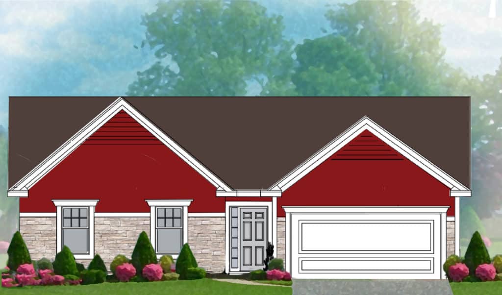 This plan features a full basement with rough-in basement plumbing, a two-car garage, a 35-year roof, all-electric appliances, a stucco and stone front facade, a spacious master suite, and laundry on the main level. Homes built with this plan are Energy Star rated and include energy-efficient windows and efficient HVAC. Buyers must income-qualify under HOME guidelines; down payment assistance is available for qualified buyers.