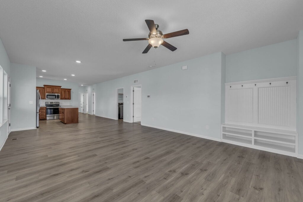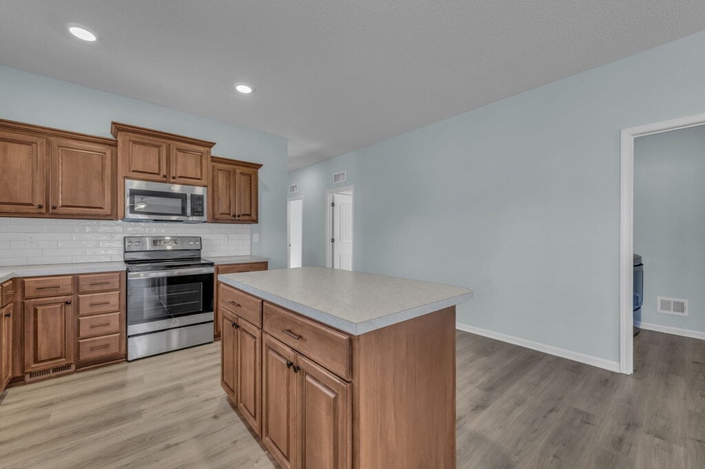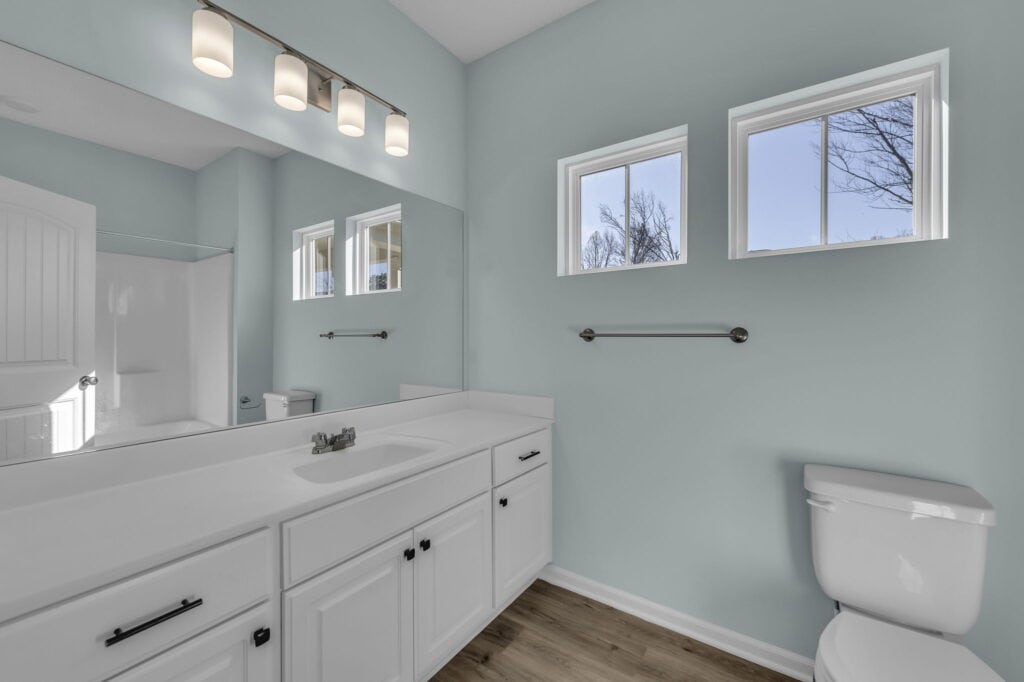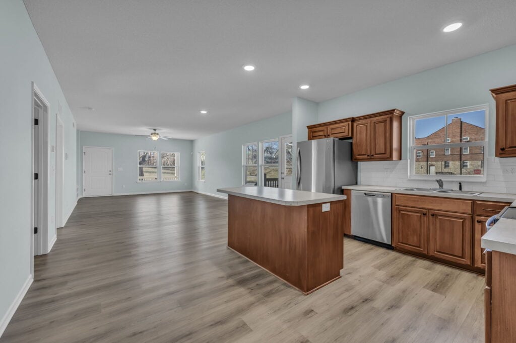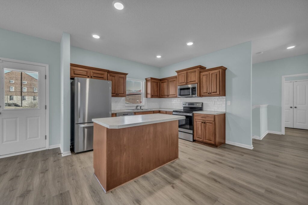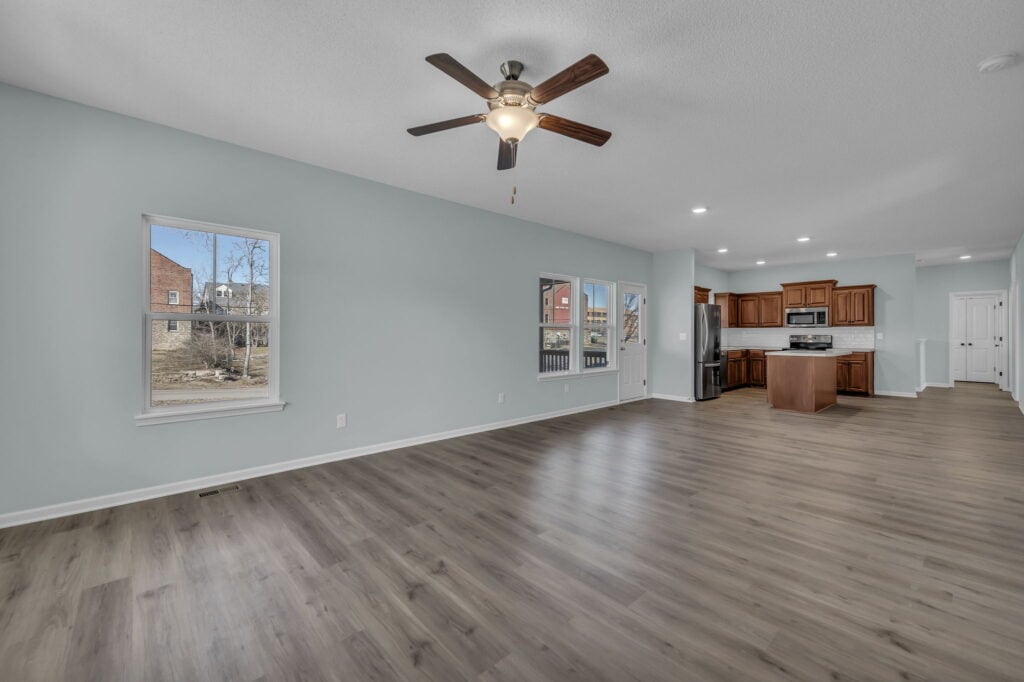 This home is built on the 640 Seneca plan, which features an open floorplan, a walk-out basement, rear-entry two-car garage, vinyl/laminate floors in the living room, dining room, and kitchen. Click here to view a walkthrough of this floor plan.
